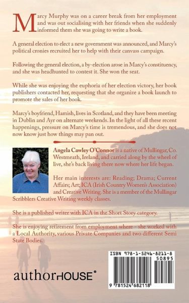 Marcy Murphy was on a career break from her employment and was out socialising with her friends when she suddenly informed them she was going to write a book. A general election to elect a new government was announced, and Marcy’s political cronies recruited her to help with their canvass campaign. Following the general election, a by-election arose in Marcy’s constituency, and she was headhunted to contest it. She won the seat. While she was enjoying the euphoria of her election victory, her book publishers contacted her, requesting that she organize a book launch to promote the sales of her book. Marcy’s boyfriend, Hamish, lives in Scotland, and they have been meeting in Dublin and Ayr on alternate weekends. In the light of all these recent happenings, pressure on Marcy’s time is tremendous, and she does not now know just how things may pan out.
