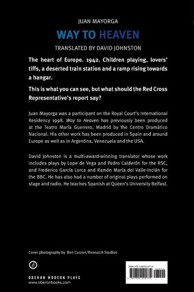 The heart of Europe. 1942. Children playing, lovers' tiffs, a deserted train station and a ramp rising towards a hangar. This is what you can see, but what should the Red Cross representative report say? Way to Heaven has previously been produced at the Teatro Mara Guerrero, Madrid by the Centro Dramatico Nacional. A production of this English translation opened at the Royal Court Theatre, London in June 2005.