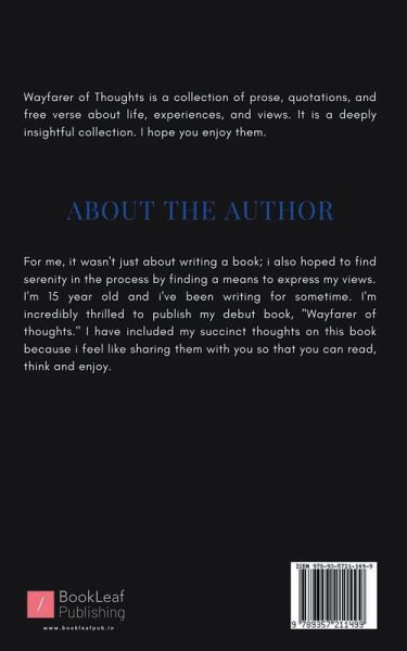 Wayfarer of Thoughts is a collection of prose, quotations, and free verse about life, experiences, and views. It is a deeply insightful collection. I hope you enjoy them.
