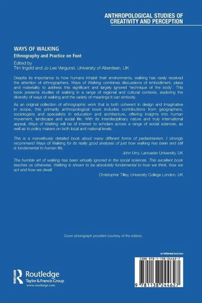 'This is a marvelously detailed book about many different forms of pedestrianism. I strongly recommend Ways of Walking for its really good analyses of just how walking has been and still is fundamental to human life.' John Urry, Lancaster University, UK 'The humble art of walking has been virtually ignored in the social sciences. This excellent book teaches us otherwise. Walking is shown to be absolutely fundamental to how we think, how we act and how we dwell.' Christopher Tilley, University College London, UK 'This fascinating collection, edited by Aberdeen-based anthropologists Tim Ingold and Jo Lee Vergunst, unveils the tacit nature of walking and will likely make most readers take a different stroll through their own ethnographic data. The volume convincingly demonstrates that walking is not merely another field of enquiry, but an integral, and often forgotten, aspect of social life per se.' Social Anthropology 'The eclectic accounts of walking collated in Ways of Walking illustrate how fundamental moving on foot is to human life. The content is engaging and varied. The reader is transported, chapter by chapter, to far-flung places in urban and rural settings in the developed and developing worlds. ...This is a fascinating book that will heighten the reader's awareness of walking practices - their own as well as others.' New Zealand Geographer 'Whilst each chapter in itself offers an intriguing ethnographic insight into the ways of walking, the collection as a whole opens up into a rich, engrossing, and highly enjoyable conversation.' Journal of the Royal Anthropological Institute 'The collection edited by Ingold and Vergunst sets a standard for work on what it is to walk and to know place and the relationship between the two. The work of the editors can be found at the heart of contemporary debates and research regarding mobility, knowledge and perception.' Sociology