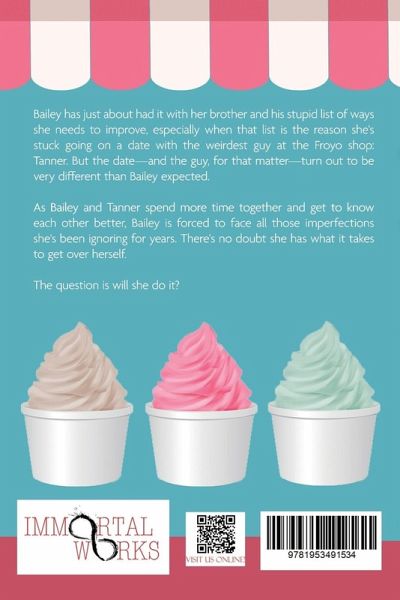 Bailey has just about had it with her brother and his stupid list of ways she needs to improve, especially when that list is the reason she's stuck going on a date with the weirdest guy at the Froyo shop: Tanner. But the date-and the guy, for that matter-turn out to be very different than Bailey expected. As Bailey and Tanner spend more time together and get to know each other better, Bailey is forced to face all those imperfections she's been ignoring for years. There's no doubt she has what it takes to get over herself. The question is will she do it?