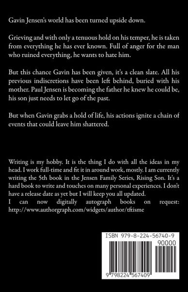 Gavin Jensen's world has been turned upside down. Grieving and with only a tenuous hold on his temper, he is taken from everything he has ever known. Full of anger for the man who ruined everything, he wants to hate him. But this chance Gavin has been given, it's a clean slate. All his previous indiscretions have been left behind, buried with his mother. Paul Jensen is becoming the father he knew he could be, his son just needs to let go of the past. But when Gavin grabs a hold of life, his actions ignite a chain of events that could leave him shattered.