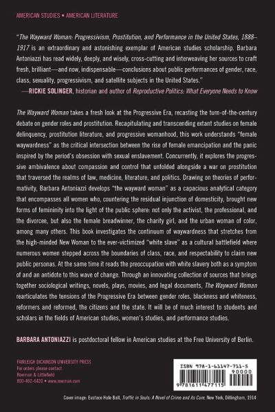 The Wayward Woman takes a fresh look at the Progressive Era, recasting the turn-of-the-century debate on gender roles and prostitution. Recapitulating and transcending extant studies of female delinquency, prostitution literature, and Progressive womanhood, this work understands "female waywardness" as the critical intersection between the rise of female emancipation and the panic inspired by the period's obsession with sexual enslavement. Concurrently, it explores the Progressive ambivalence about compassion and control which unfolded alongside a war on prostitution that traversed the realms of law, medicine, literature and politics. Drawing on theories of performativity the author develops "the wayward woman" as a capacious analytical category that encompasses all women who, countering the residual injunction of domesticity, brought new forms of femininity into the light of the public sphere: the activist, the professional and the divorcee, but also the female breadwinner, the charity girl and the urban woman of color--among many others. The book investigates the continuum of waywardness that stretches from the high-minded New Woman to the ever-victimized "white slave" as a cultural battlefield where numerous women stepped across the boundaries of class, race and respectability to claim new public personas. At the same time it reads the preoccupation with white slavery both as a symptom of and an antidote to this wave of change. Through an innovating collection of sources which brings together sociological writings, novels, plays, movies and legal documents, the book rearticulates the tensions of the Progressive Era between gender roles, blackness and whiteness, reformers and reformed, the citizens and the state. The Wayward Woman will be of much interest to students and scholars in the fields of American studies, women studies and performance studies.