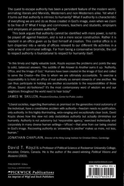 The quest to escape authority has been a persistent feature of the modern world, animating liberals and Marxists, Westerners and non-Westerners alike. Yet what if it turns out that authority is intrinsic to humanity? What if authority is characteristic of everything we are and do as those created in God's image, even when we claim to be free of it? What if kings and commoners, teachers and students, employers and employees all possess authority? This book argues that authority cannot be identified with mere power, is not to be played off against freedom, and is not a mere social construction. Rather it is resident in an office given us by God himself at creation. This central office is in turn dispersed into a variety of offices relevant to our different life activities in a wide array of communal settings. Far from being a conservative bromide, the call to respect authority is foundational to respect for humanity itself.