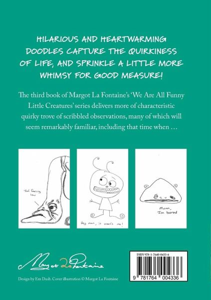 Hilarious and heartwarming doodles capture the quirkiness of life, and sprinkle a little more whimsy for good measure! The third book of Margot La Fontaine's 'We Are All Funny Little Creatures' series delivers more of characteristic quirky trove of scribbled observations, many of which will seem remarkably familiar, including that time when ... ? 98 original cartoons by Margot La Fontaine.