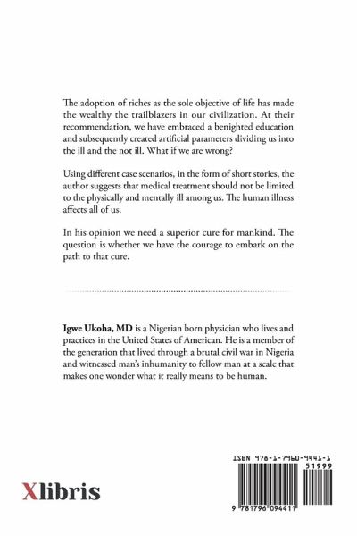 The adoption of riches as the sole objective of life has made the wealthy the trailblazers in our civilization. At their recommendation, we have embraced a benighted education and subsequently created artificial parameters dividing us into the ill and the not ill. What if we are wrong? Using different case scenarios, in the form of short stories, the author suggests that medical treatment should not be limited to the physically and mentally ill among us. The human illness affects all of us. In his opinion we need a superior cure for mankind. The question is whether we have the courage to embark on the path to that cure.