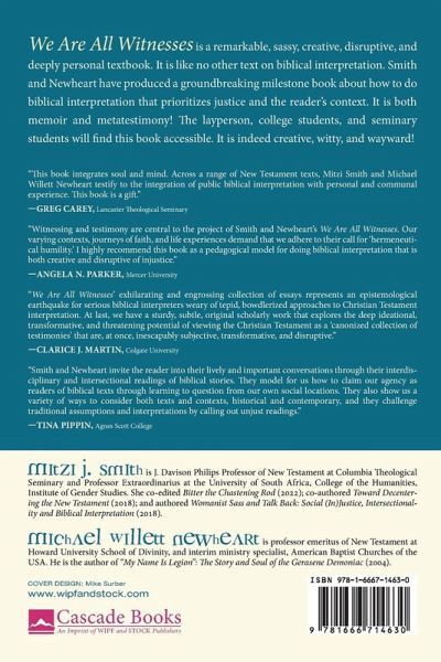 We Are All Witnesses is a remarkable, sassy, creative, disruptive, and deeply personal textbook. It is like no other text on biblical interpretation. Smith and Newheart have produced a groundbreaking milestone book about how to do biblical interpretation that prioritizes justice and the reader's context. It is both memoir and metatestimony! The layperson, college students, and seminary students will find this book accessible. It is indeed creative, witty, and wayward!
