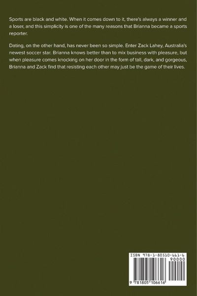 Sports are black and white. When it comes down to it, there's always a winner and a loser, and this simplicity is one of the many reasons that Brianna became a sports reporter. Dating, on the other hand, has never been so simple. Enter Zack Lahey, Australia's newest soccer star. Brianna knows better than to mix business with pleasure, but when pleasure comes knocking on her door in the form of tall, dark, and gorgeous, Brianna and Zack find that resisting each other may just be the game of their lives.