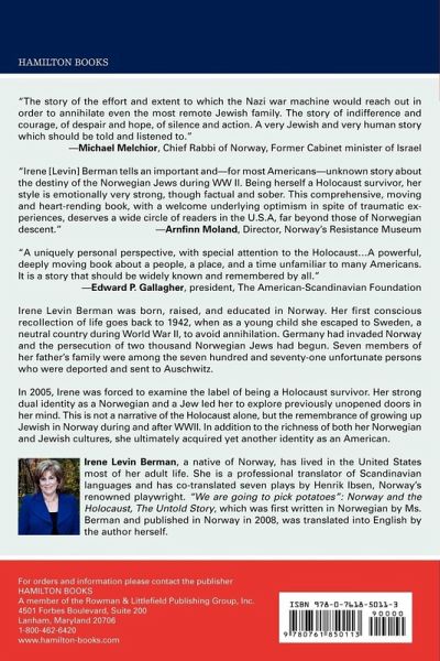Irene Levin Berman was born, raised, and educated in Norway. Her first conscious recollection of life goes back to 1942, when as a young child she escaped to Sweden, a neutral country during World War II, to avoid annihilation. Germany had invaded Norway and the persecution of two thousand Norwegian Jews had begun. Seven members of her father's family were among the seven hundred and seventy-one unfortunate persons who were deported and sent to Auschwitz. In 2005, Irene was forced to examine the label of being a Holocaust survivor. Her strong dual identity as a Norwegian and a Jew led her to explore previously unopened doors in her mind. This is not a narrative of the Holocaust alone, but the remembrance of growing up Jewish in Norway during and after WWII. In addition to the richness of both her Norwegian and Jewish cultures, she ultimately acquired yet another identity as an American.