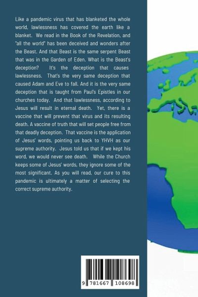 Like a pandemic virus that has blanketed the whole world, lawlessness has covered the earth like a blanket. We read in the Book of the Revelation, and "all the world" has been deceived and wonders after the Beast. And that Beast is the same serpent Beast that was in the Garden of Eden. What is the Beast's deception? It's the deception that causes lawlessness. That's the very same deception that caused Adam and Eve to fall. And it is the very same deception that is taught from Paul's Epistles in our churches today. And that lawlessness, according to Jesus will result in eternal death. Yet, there is a vaccine that will prevent that virus and its resulting death. A vaccine of truth that will set people free from that deadly deception. That vaccine is the application of Jesus' words, pointing us back to YHVH as our supreme authority. Jesus told us that if we kept his word, we would never see death. While the Church keeps some of Jesus' words, they ignore some of the most significant. As you will read, our cure to this pandemic is ultimately a matter of selecting the corrent supreme authority.