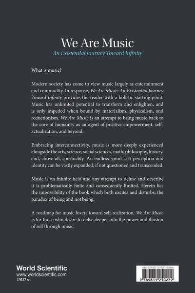 Modern society has come to view music largely as entertainment and commodity. In response, We Are Music: An Existential Journey Toward Infinity provides the reader with a holistic starting point. Music has unlimited potential to transform and enlighten, and is only impeded when bound by materialism, physicalism, and reductionism. We Are Music is an attempt to bring music back to the core of humanity as an agent of positive empowerment, self-actualization, and beyond. Embracing interconnectivity, music is more deeply experienced alongside the arts, science, social sciences, math, philosophy, history, and, above all, spirituality. An endless spiral, self-perception and identity can be vastly expanded, if not questioned and transcended. Music is an infinite field and any attempt to define and describe it is problematically finite and consequently limited. Herein lies the impossibility of the book which both excites and disturbs; the paradox of being and not being. A roadmap for music lovers toward self-realization, We Are Music is for those who desire to delve deeper into the power and illusion of self through music.
