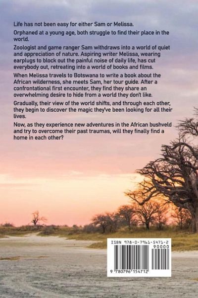 Life has not been easy for either Sam or Melissa. Orphaned at a young age, both struggle to find their place in the world. Zoologist and game ranger Sam withdraws into a world of quiet and appreciation of nature. Aspiring writer Melissa, wearing earplugs to block out the painful noise of daily life, has cut everybody out, retreating into a world of books and films. When Melissa travels to Botswana to write a book about the African wilderness, she meets Sam, her tour guide. After a confrontational first encounter, they find they share an overwhelming desire to hide from a world they don't like. Gradually, their view of the world shifts, and through each other, they begin to discover the magic they've been looking for all their lives. Now, as they experience new adventures in the African bushveld and try to overcome their past traumas, will they finally find a home in each other?