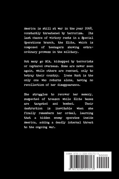America is still at war in the year 2068, constantly threatened by terrorism. Its last chance of victory rests in a Special Operations branch, the Elite, which is composed of teenagers showing extraordinary prowess in the military. But many go MIA, kidnapped by terrorists or captured overseas. Some are never seen again, while others are rescued, only to betray their country. Irene Hunt is the only one who returns alone, having no recollection of her disappearance. She struggles to recover her memory, suspected of treason while Elite bases are targeted and bombed. Their destruction is inevitable when she finally remembers her ordeal, learning that a hidden enemy operates inside America, adding a deadly internal threat to the ongoing war.