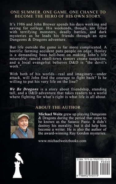 It's 1986 and John Brewer spends his days working and saving for college. His weekends, though, are filled with terrifying monsters, deadly battles, and dark mysteries as he leads his friends through an epic Dungeons & Dragons adventure. But life outside the game is far more complicated. A horrific farming accident puts people on edge; Henley is a demanding boss hell-bent on making John's life miserable; rancid small-town rumors create suspicion, and a local evangelist believes D&D is "the devil's work." With both of his worlds-real and imaginary-under attack, will John find the courage to fight back? Is he willing to put his very life on the line? We Be Dragons is a story about friendship, standing tall, and a D&D adventure that takes readers to a world where fighting for what's right is what life is all about.