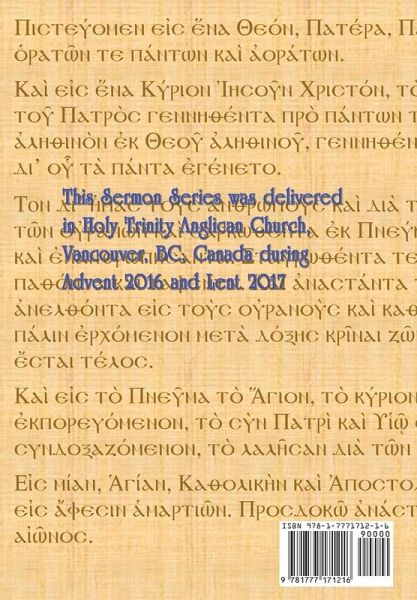 A series of sermons expounding the Nicene Creed delivered in Holy Trinity Anglican Church, Vancouver, BC, Canada during Advent 2016 and Lent 2017, with editor's Foreword, texts and bibliography.