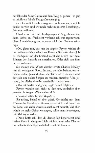 Es ist jedoch wichtig zu bedenken, dass jede Person, unabhängig von ihrem sozialen Status, ihre eigene Geschichte zu erzählen hat. Der Roman wird aus der Sicht beider Hauptpersonen, also Peyton Torres und Charles McCoy, erzählt. Ich finde das immer wieder gut, weil man als Leser die Perspektiven der wichtigsten Personen erhält und keine Inhaltslücken entstehen. Man ist in einigen Dingen gedanklich weiter als die Charaktere selbst. Die Leser fühlen sich mehr mit der Geschichte verbunden und setzen sich intensiver damit auseinander. Als ich die Beschreibung und das Buchcover, das übrigens sehr schön gestaltet ist, zum ersten Mal gelesen bzw. gesehen habe, dachte ich mir: „Schön, noch eine Arm-gegen-Reich-Geschichte“, denn seien wir ehrlich, es gibt viele Geschichten dazu. Ich dachte auch, dass die Geschichte wie alle anderen sein wird. Natürlich dürfen in dieser Geschichte die üblichen Charakteristika nicht fehlen: wohlhabender, nachgiebiger Junge trifft auf hart arbeitendes, intelligentes Mädchen aus einfachen Verhältnissen, begleitet von widerstrebenden Eltern und ablehnenden Mitschülern. Es gibt jedoch auch Inhalte in der Geschichte, die man nicht oft in solchen Erzählungen findet: dass die Bürgermeisterin eigentlich gar nicht unglücklich mit der Beziehung war und sie es am Ende sogar richtig gefeiert hat. Der Vater war eher dagegen. Außerdem waren die Mutter und der Vater von Peyton sowie all ihre Freunde nicht so glücklich über die Beziehung, wie man vielleicht denken würde, denn sie mögen Eastside eigentlich auch gar nicht, weswegen Peyton niemandem erzählt hat, dass es sich eigentlich um eine Fake-Beziehung handelt. Ich vergebe der Geschichte 4 Sterne, weil, obwohl ich die ganze Romanze zwischen Peyton und Charles wirklich genossen habe und man die Entwicklung von nicht einmal Freunde zu Zuneigung gesehen hat, mir am Ende dennoch mehr Drama gefehlt hat und sich das Ende an sich nicht wie ein Abschluss angefühlt hat. Am Ende hat nur Peyton aus der Westside das Geheimnis von Charles herausgefunden, obwohl es eigentlich die ganze Stadt betroffen hat. Peyton hat sogar all die Bilder von der Verwüstung gesehen und es wirklich niemandem erzählt, nicht einmal ihrer Mutter, die als Feuerwehrhauptfrau zuständig ist. Hätte es die ganze Westside herausgefunden, dann wäre natürlich die Amtszeit der Bürgermeisterin in Gefahr gewesen, aber man hätte irgendetwas einbauen können, wie Charles und seine Mutter die Situation für sich verbessern würden. Peyton hat ihm wirklich zwei Wochen lang die kalte Schulter gezeigt und das war's. Das Schockierendste daran ist, dass sie am Anfang nicht den richtigen Grund für den Beginn ihrer Fake-Beziehung kannte.