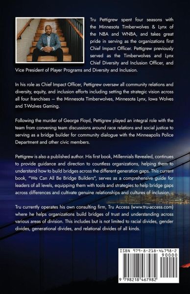 Purpose of this Book: This book exists to serve as a guide to help corporate and community leaders better understand how to Build Bridges across differences and division of all kinds among their teams and community members. Book Description: In today's diverse and interconnected world, effective leadership goes beyond just managing teams and communities. It requires Inclusive Leadership! It requires the ability to build bridges of empathy and understanding, fostering an environment where individuals feel valued, heard, and supported. In "Building Bridges," this empowering book offers a comprehensive guide for corporate and community leaders, equipping them with the tools and strategies to help bridge gaps and cultivate genuine connections. Drawing on real-world examples and expert insights, this thought-provoking resource delves into the core principles of empathy and understanding, unveiling their transformative power within leadership roles. Through practical advice and actionable steps, leaders will learn to embrace diversity, empathize with the experiences of others, and create an inclusive culture that celebrates differences. "Building Bridges" serves as a compass for leaders navigating the complex terrain of modern leadership. From building trust to resolving conflicts and fostering collaboration, this book explores various aspects of leadership through an empathetic lens, offering strategies to navigate challenges and enhance communication, all delivered in a very succinct and deliberate way. As leaders embark on this journey of self-discovery and growth, they will be empowered to foster stronger connections, cultivate mutual respect, and inspire their teams and communities to reach their full potential, both individually and collectively. Whether you are an established leader in your organization, or an aspiring leader looking to make a difference in the world, this book is an invaluable resource for unlocking the true potential of leadership and creating lasting positive change.