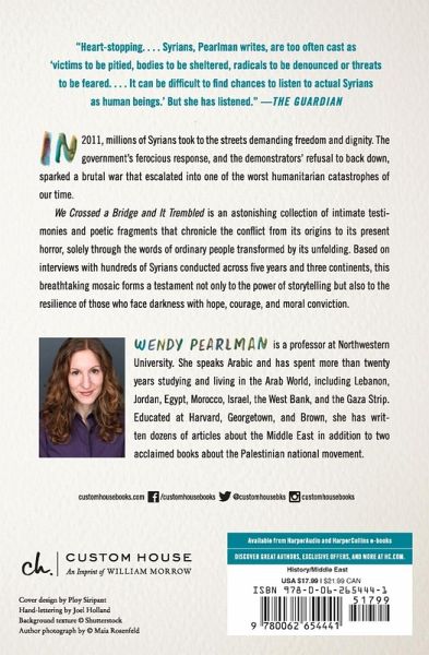Yet despite all the reporting, the video, and the wrenching photography, the stories of ordinary Syrians remain unheard, while the stories told about them have been distorted by broad brush dread and political expediency. This fierce and poignant collection changes that. Based on interviews with hundreds of displaced Syrians conducted over four years across the Middle East and Europe, We Crossed a Bridge and It Trembled is a breathtaking mosaic of first-hand testimonials from the frontlines. Some of the testimonies are several pages long, eloquent narratives that could stand alone as short stories; others are only a few sentences, poetic and aphoristic. Together, they cohere into an unforgettable chronicle that is not only a testament to the power of storytelling but to the strength of those who face darkness with hope, courage, and moral conviction.