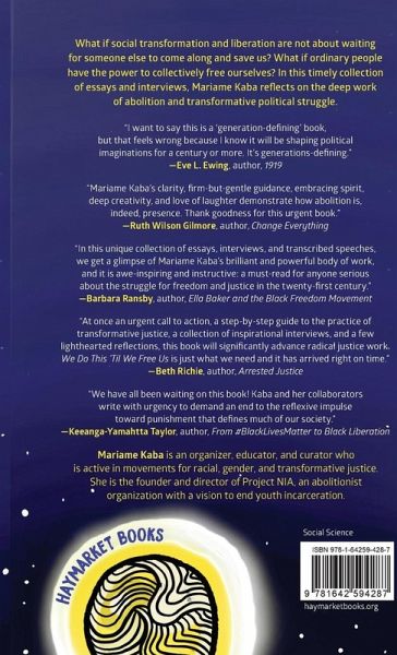 New York Times Bestseller "Organizing is both science and art. It is thinking through a vision, a strategy, and then figuring out who your targets are, always being concerned about power, always being concerned about how you're going to actually build power in order to be able to push your issues, in order to be able to get the target to actually move in the way that you want to." What if social transformation and liberation isn't about waiting for someone else to come along and save us? What if ordinary people have the power to collectively free ourselves? In this timely collection of essays and interviews, Mariame Kaba reflects on the deep work of abolition and transformative political struggle. With a foreword by Naomi Murakawa and chapters on seeking justice beyond the punishment system, transforming how we deal with harm and accountability, and finding hope in collective struggle for abolition, Kaba's work is deeply rooted in the relentless belief that we can fundamentally change the world. As Kaba writes, "Nothing that we do that is worthwhile is done alone."