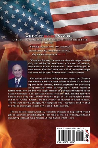 WE DON'T BLUSH ANYMORE God asks a very pointed question and answers it in Jeremiah 6:15 and 8:12. He asks: "Were they ashamed when they committed abominations? No, they were not ashamed, they did not know how to BLUSH". We can ask that very same question about the people we meet daily who exhibit the characteristics of rudeness, ill-manners, impoliteness and even abominations. We will probably get the same answer. They don't know how to blush, never were taught and never will be sorry for their uncivil words or actions. This book reveals how civility, manners, respect, and Christian attributes within the American culture have been cast aside and replaced by self-centered, immoral, disgraceful, and demeaning living standards within all categories of human society. It further reveals how children were taught manners and biblical attributes when our nation was founded. Their education was centered on the Holy Bible for nearly two hundred years along with Christian principles taught in The New England Primer and The McGuffey's Reader as the primary source of education in the schoolhouse. You will learn how that changed, who changed it, why it happened, and best of all you will be encouraged to learn how it can be turned around. This is a book for parents, teachers, counselors, overseers, and especially boys and girls so that everyone working together can make all of us a more loving, polite, and mannerly people and make America a better place in which to live. This is the first and probably the only book I will ever write. It's taken four years to complete and at ninety years of age time would most assuredly give out before I could produce another book. The first three and one-half years of writing this book was painstakingly slow. Then the words of Jeremiah 6:15 and 8:12 were discovered and the Holy Spirit supplied words, energy, and discipline to bring this book to completion. It may not become a New York Times best seller, but it is a clarion call to people of all ages in the United States and throughout the world to repent of their abominations and return to civility. Robert K. Parsons