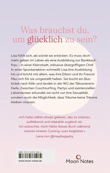 Authentische Reise der Selbstfindung: Begleite Lisa auf ihrem inspirierenden Weg zur Selbstakzeptanz und dem Entdecken ihrer eigenen Sexualität in der pulsierenden Stadt Köln. Der New-Adult-Roman behandelt wichtige und aktuelle Themen wie queere Liebe, Selbstfindung und das Aufbrechen traditioneller Lebenswege, verpackt in eine berührende Geschichte. Erlebe, wie Lisa durch die Begegnung mit der charismatischen Tätowiererin Karla und einer lebhaften neuen Freundesgruppe wächst und sich entwickelt. Eingängiger Coming-of-Age-Roman, der nicht nur Jugendliche und junge Erwachsene anspricht, sondern alle, die sich mit den Herausforderungen des Erwachsenwerdens und der Suche nach dem eigenen Ich identifizieren können. Inspirierend und aufklärend: Neben einer packenden Handlung bietet das Buch Einblicke in die LGBTQIA+ Community und regt zu einem offenen Dialog über Sexualität und Geschlechtsidentität an. Entdecke Köln aus einer neuen Perspektive, geprägt durch kulturelle Vielfalt, Offenheit und eine lebendige queere Szene. Von Kritikern gelobt: "we fell in love in october" wird für seine intensive, aufklärende und gleichzeitig relatable Erzählweise geschätzt, die die Leser_innen auf jeder Seite fesselt. Große Fanbase und Community-Beteiligung: Unterstützt durch eine starke Online-Community und die Beliebtheit der Autorin Inka Lindberg, die für ihre authentischen und berührenden Geschichten bekannt ist. Behandelt die Suche nach dem wahren Glück im Leben und das mutige Streben nach einem authentischen Selbst, ein Thema, das in der heutigen Gesellschaft von großer Bedeutung ist. Einzigartige Charaktere und Beziehungen: Von Lisas innerer Zerrissenheit bis zu Karlas starker Persönlichkeit - die Charaktere sind vielschichtig und ihre Beziehungen entwickeln sich auf eine Weise, die Leser_innen tief berührt.