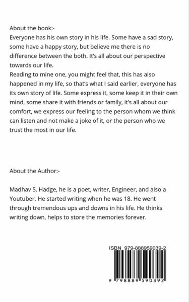 Everyone has his own story in his life. Some have a sad story, some have a happy story, but believe me there is no difference between the both. It’s all about our perspective towards our life. Reading to mine one, you might feel that, this has also happened in my life, so that’s what I said earlier, everyone has its own story of life. Some express it, some keep it in their own mind, some share it with friends or family, it’s all about our comfort, we express our feeling to the person whom we think can listen and not make a joke of it, or the person who we trust the most in our life.