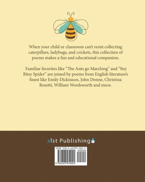 It seems that every kid goes through a "bug" phase. When your child or classroom can't resist collecting caterpillars, ladybugs, and crickets, this collection of poems makes a fun and educational companion. This book contains 31 poems and nursery rhymes that are perfect for budding entomologists and those who haven't outgrown their sense of wonder when seeing a spider's silken web. Familiar favorites like "The Ants go Marching" and "Itsy Bitsy Spider" are joined by poems from English literature's finest like Emily Dickinson, John Donne, Christina Rosetti, William Wordsworth and more. This book features a fully-linked table of contents and a sprinkling of whimsical insect illustrations.