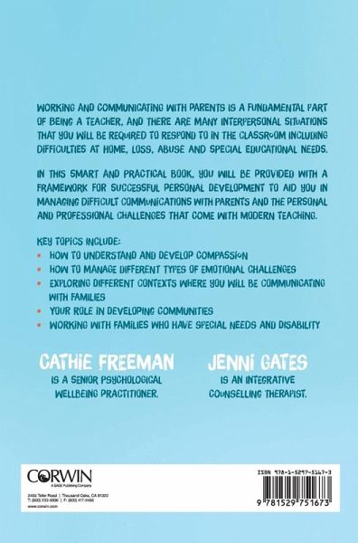Working and communicating with parents is a fundamental part of being a teacher, and there are many interpersonal situations that you will be required to respond to in the classroom including difficulties at home, loss, abuse and special educational needs. In this smart and practical book, you will be provided with a framework for successful personal development to aid you in managing difficult communications with parents and the personal and professional challenges that come with modern teaching.