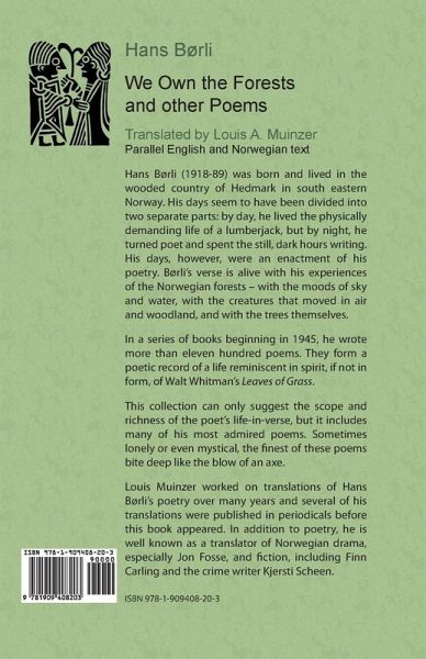 Hans BÃ rli (1918â 89) was born and lived in the wooded country of Hedmark in south eastern Norway. In a series of books beginning in 1945, he wrote more than eleven hundred poems. This collection includes many of his most admired poems. Sometimes lonely or even mystical, the finest of these poems bite deep like the blow of an axe.