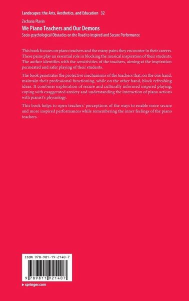 The book penetrates the protective mechanisms of the teachers that, on the one hand, maintain their professional functioning, while on the other hand, block refreshing ideas. It combines exploration of secure and culturally informed inspired playing, coping with exaggerated anxiety and understanding the interaction of piano actions with pianist's physiology.