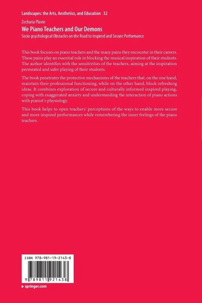 The book penetrates the protective mechanisms of the teachers that, on the one hand, maintain their professional functioning, while on the other hand, block refreshing ideas. It combines exploration of secure and culturally informed inspired playing, coping with exaggerated anxiety and understanding the interaction of piano actions with pianist's physiology.