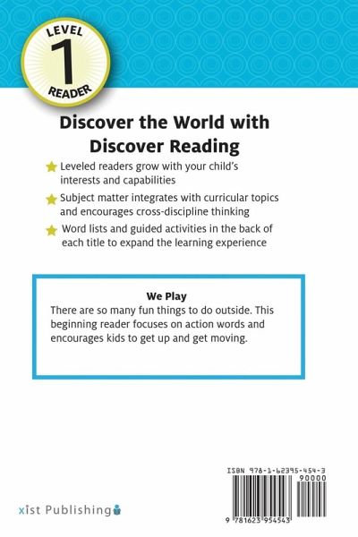 There are so many fun things to do outside. This beginning reader focuses on action words and encourages kids to get up and get moving. Like all Discover Reading, level 1 readers, We Play features short sentences and beginning sight words along with activities in the back to continue the learning experience.