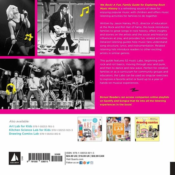 Finally! A hip, fun and culturally relevant series of music appreciation books, perfect for modern music-loving families who want to take advantage of this era of exploding musical access! Get a personal guided tour through an amazing historical back-catalog of music that was previously unavailable. We Rock!: A Fun Family Guide for Exploring Rock Music History is a guided tour through thrilling corners of the musical universe that should not be missed! This book highlights great songs in rock history, shares insights and stories on the artists, details the social and historical influences at play, and offers fun activities for families to do together. Detailed listening guides help music fans understand song structure, lyrics, and instrumentation. Related listening lists introduce readers to other exciting artists in similar genres. Set into 52 "music labs," these stories can be explored at will by individuals and families or used as a curriculum for community groups and educators. There really are no other books out there like this - that are music appreciation books for a general audience that focus on popular music - so pick up yours today and you will have your whole family singing along with We Rock.