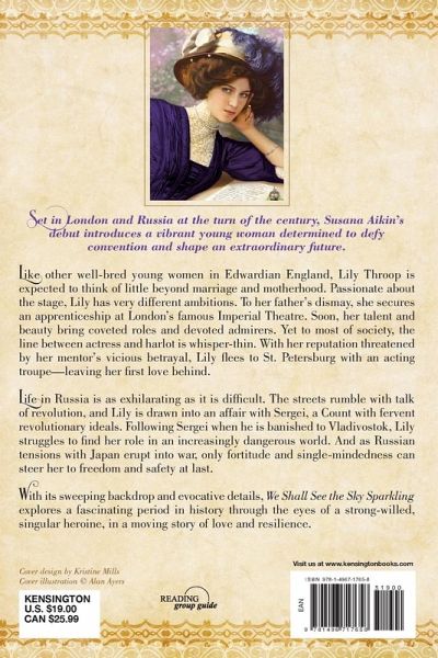 Winner of the 2019 American Fiction Award for Best Historical Fiction Set in London and Russia at the turn of the century, Susana Aikin's debut introduces a vibrant young woman determined to defy convention and shape an extraordinary future. Like other well-bred young women in Edwardian England, Lily Throop is expected to think of little beyond marriage and motherhood. Passionate about the stage, Lily has very different ambitions. To her father's dismay, she secures an apprenticeship at London's famous Imperial Theatre. Soon, her talent and beauty bring coveted roles and devoted admirers. Yet to most of society, the line between actress and harlot is whisper-thin. With her reputation threatened by her mentor's vicious betrayal, Lily flees to St. Petersburg with an acting troupe-leaving her first love behind. Life in Russia is as exhilarating as it is difficult. The streets rumble with talk of revolution, and Lily is drawn into an affair with Sergei, a Count with fervent revolutionary ideals. Following Sergei when he is banished to Vladivostok, Lily struggles to find her role in an increasingly dangerous world. And as Russian tensions with Japan erupt into war, only fortitude and single-mindedness can steer her to freedom and safety at last. With its sweeping backdrop and evocative details, We Shall See the Sky Sparkling explores a fascinating period in history through the eyes of a strong-willed, singular heroine, in a moving story of love and resilience.