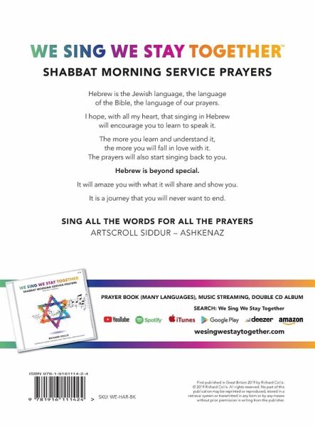 The Shabbat prayers are beautiful love songs; full of goodness, affection, adoration, hope, kindness and generosity. Singing a prayer is not like singing a song, they are not just any words. Some are crying out to be sung with great happiness because we love Hashem with all our heart, and all our soul. Some tell us to sanctify clearly and harmoniously, and that Hashem wants us to sing tuneful songs of praise to Him. Some are serious, some sad, some educational, but all were written with intent and purpose by the greatest scholars ever produced by our people. When we share prayer melodies we are connected and together forever, and when we sing together we stay together because there is that lovely feeling of being amongst friends. AM ISRAEL CHAI - the people of Israel live. With love, and hope for our children, Richard Collis