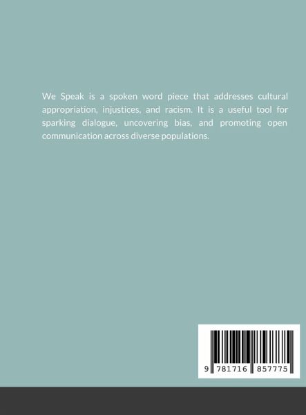 We Speak is a spoken word piece that addresses cultural appropriation, injustices, and racism. It is a useful tool for sparking dialogue, uncovering bias, and promoting open communication across diverse populations.
