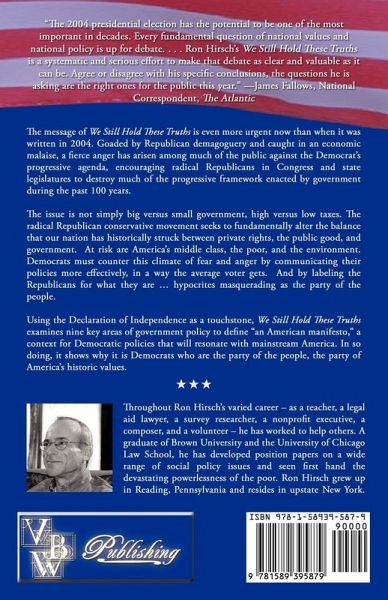 The message of We Still Hold These Truths is even more urgent now than when it was written in 2004. Goaded by Republican demagoguery and caught in an economic malaise and the pandemic, a fierce anger arose among much of the public against the Democrat's progressive agenda, encouraging Republicans in Congress and state legislatures to destroy much of the progressive framework enacted by government during the past 100 years and attack the process of democracy that has been America's hallmark. What right-wing pundits started, Donald Trump honed to perfection in the 2016 campaign and his presidency: the use of demagoguery and the big lie. With these tools, Trump and the pundits have roused people who were angry and fearful to a fever pitch. And they will believe as fact anything that Trump and his allies tell them. The issue is no longer the traditional conservative/liberal divide, big versus small government, high versus low taxes. Trump and his allies seek to fundamentally alter the balance that our nation has historically struck between private rights, the public good, and government. At risk are America's middle class, the poor, and the environment. But that's not the worst of it. I did not foresee, even when I wrote the Foreword to the 2018 edition, the depth to which Trump and his allies would set American against American and that they would threaten the very process of democracy - free elections. ¿Democrats must understand that the world as the middle class knew it since WWII has slowly been turned upside down over the past 50 years. Small wonder they are scared, angry, and alienated. Democrats must counter this climate of fear and anger by communicating policies to counter this trend more effectively, in a way the average voter gets; it is we who are the party of the people. And by labeling the Republicans for what they are ... hypocrites masquerading as the party of the people. Those policies need to clearly establish that Democrats are not just for government of the people and by the people, but for the people. Democrats need to confront the labels of anti-family and anti-American-values that the Republicans have successfully applied to them by showing that their policies, be it policies that support the family or be it the right to an abortion or support for the LBGTQ community, flow from a respect for all Americans, including the traditional white middle class, as called for in the Declaration of Independence. It must be clear that the white middle class is respected and is an important part of our vision for a stronger future America.