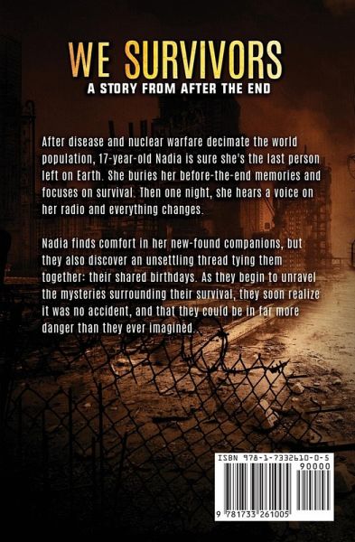 After disease and nuclear warfare decimate the world population, 17-year-old Nadia is sure she's the last person left on Earth. She buries her before-the-end memories and focuses on survival. Then one night, she hears a voice on her radio and everything changes. Nadia finds comfort in her new-found companions, but they also discover an unsettling thread tying them together: their shared birthdays. As they begin to unravel the mysteries surrounding their survival, they soon realize it was no accident, and that they could be in far more danger than they ever imagined… Everything you love about the post-apocalyptic genre (science fiction, survival, adventure...) with a healthy dose of mystery and romance, too! Fans of The 5th Wave, The 100, or Maximum Ride will love We Survivors! Be advised, this novel contains discussions of self-harm and suicide.