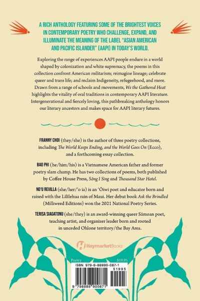 A beautiful anthology featuring some of the brightest voices in contemporary American poetry who challenge, expand, and illuminate the meaning of the label "Asian American and Pacific Islander" in today's world. In this thoughtfully curated, intergenerational collection, poets of multiple languages, lands, and waters write against and through the contested terrain of AAPI identity. Too often, Pacific Islanders and Asian Americans are squeezed into the same story. The poets gathered here, and the lineages they represent, exceed this sameness. May this anthology uplift complexities and incite…mehr