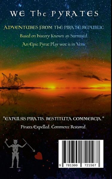 Welcome to the Island of Providence in the Bahamas, 1718. Pirate Captains of many different nations successfully formed a Republic here off the shores of America-in retaliation against the same powers that America would come to defy: not just England, empire, colonialism, but slavery, poverty, forced military service, forced taxation (privateering), religious persecution, etc. Why and how did they manage to come together into a Republic? Why and how did their Republic end? If there is a central message to this play, among the many piratical lessons that may be gleaned, it is that, still, We Are All Pirates. And All of these Pirates, are Us. This much-anticipated theatrical entertainment and treasure-trove of golden-age history, We The Pyrates, is written entirely in verse. Lovers of Homer, Virgil, Ovid, Shakespeare and Rostand must not miss this modern masterwork by Schaar.
