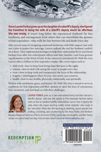 Since Lauren Forbus grew up as the daughter of a sheriff's deputy, she figured the transition to being the wife of a sheriff's deputy would be effortless. She was wrong. It wasn't long before she experienced firsthand the fear, loneliness, and estrangement from others that can overwhelm the spouses of first responders-who walk the line between life and death every day. After several years of navigating emotional landmines with little support and without a plan to protect her marriage, Lauren realized she and her husband couldn't do it alone. They implemented strategies to help their relationship thrive and found backup from other law enforcement officers and their families-and from grounding themselves in the Word of God. In her interactive devotional We Walk this Line, Lauren offers a lifeline to first-responder couples. She covers topics such as · shift work-how to keep from being ships that pass in the night; · trauma-how to deal with seeing the worst in people every day; · trust-how to keep truth and transparency the focus of the relationship; · tragedy-what happens when it's your own worst-case scenario; · health-how to stay healthy physically, emotionally, and spiritually. Written with candidness, grace, and humor, We Walk This Line is meant to serve as a pathway for first responders and their spouses to open the lines of communication, reconnect, and deal head on with their challenges.