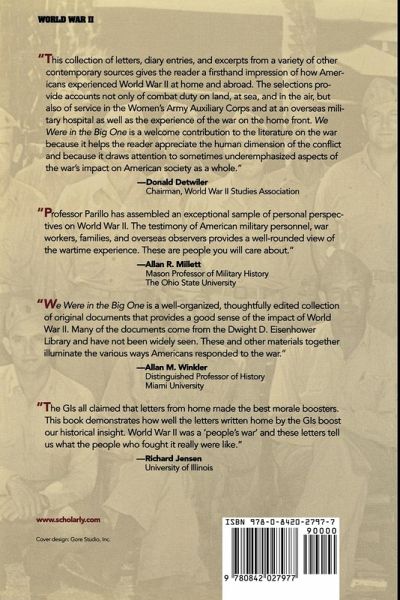 World War II was truly the largest and greatest conflict in U.S. history. We Were in the Big One: Experiences of the World War II Generation is a collection of diary entries, letters, photographs, and other documents from that era. Carefully selected from the Eisenhower Library's World War II Participants Collection and other archives, this material-generated in response to the historical events themselves-reflects the mindset of the people who produced it. These documents shed light on one of the most important periods of American history. We Were in the Big One is one of the first books to make primary source material on this era widely available for use in the classroom. These contemporary documents reveal a great deal about the attitudes of the World War II generation toward matters such as gender, political beliefs, race, religion, social and cultural mores, and personal values. With a concise introduction and headnotes that introduce each document, Prof. Parillo provides an interpretive framework that puts the selections in context for students. Parillo shows how the war affected Americans across gender lines, across social and political spectrums, on the home front, and on the battlefield. This compelling text enables students to discover how the war truly influenced an entire generation of Americans. We Were in the Big One is an excellent resource for courses in American twentieth-century history, World War II, and U.S. social and cultural history.