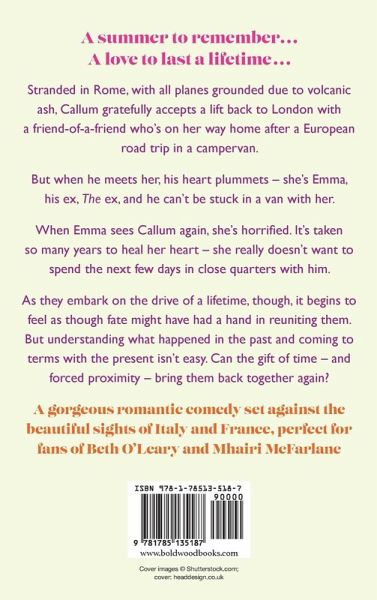 A gorgeous second chance romance set against the beautiful backdrop of Italy and France A summer to remember... A love to last a lifetime... Stranded in Rome, with all planes grounded due to volcanic ash, Callum gratefully accepts a lift back to London with a friend-of-a-friend who's on her way home after a European road trip in a campervan. But when he meets her, his heart plummets - she's Emma, his ex, The ex, and he can't be stuck in a van with her. When Emma sees Callum again, she's horrified. It's taken so many years to heal her heart - she really doesn't want to spend the next few days…mehr