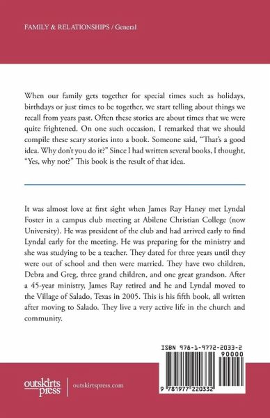When our family gets together for special times such as holidays, birthdays or just times to be together, we start telling about things we recall from years past. Often these stories are about times that we were quite frightened. On one such occasion, I remarked that we should compile these scary stories into a book. Someone said, "That's a good idea. Why don't you do it?" Since I had written several books, I thought, "Yes, why not?" This book is the result of that idea.