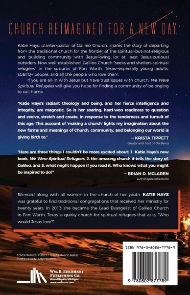 Church reimagined for a new day Katie Hays, planter-pastor of Galileo Church, shares the story of departing from the traditional church for the frontier of the spiritual-but-not-religious and building community with Jesus-loving (or at least Jesus-curious) outsiders. Now well-established, Galileo Church "seeks and shelters spiritual refugees" in the suburbs of Fort Worth, Texas—especially young adults, LGBTQ+ people, and all the people who love them. Told in funny, poignant, and short vignettes, Galileo's story is not one of how to be cool for Christ. Like its founder, Galileo is deeply uncool and deeply devout, and always straining ahead to see what God will do next. Hays says curiosity is her greatest virtue, and she recounts how her curiosity led her to share the good news with people who are half her age and intensely skeptical. If you are all-in with Jesus but have trust issues with church, We Were Spiritual Refugees will give you hope for finding a community-of-belonging to call home.