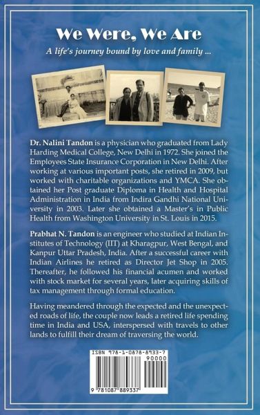 Born in simple, middle class families of Northern India, in the state of Uttar Pradesh, both Nalini and Prabhat excelled in their chosen fields of education. Their honesty, simplicity, hard work and dedication to their families helped them to attain what they have today. In this story of their life's journey, they have very candidly analyzed their success and failures, admitting their own weakness with brutal honesty. The story starts with the family history going back to almost three hundred years, moving from the era of mogul invasion to the migration of the Indian population to America. Born in the 1940s the two writers trace their life from their own childhood to their life in the twenty first century America enjoying the childhood of their grandchildren. Nalini is a doctor, who loved treating patients. However, she loved her family too. She gives up her ambition to progress further in her chosen career and settles for less, in favor of caring for her family and spending time with them. How she describes her trials of this journey along with her problems at work that she overcomes with the love and support of her family, perhaps teaches us how your loved ones support you and care for you. Throughout her journey she has maintained contact with friends and relatives and that is also her strength. Her likes and dislikes could be yours too. Prabhat is an engineer and a brilliant one. His one regret in life is that he did not grab the chance of migrating to USA in the 1960's when he was offered one. However, despite that he has achieved a lot and is satisfied with what he has attained. One is very devout the other is a nonbeliever, but these two divergent personalities have grown together with the years. This fascinating tale is witness to this miracle. The book gives the reader a clear insight about the life of an average middleclass resident of India. Their customs, their rituals, and their thought process provide the reader with a thoughtful insight into their lives. The narrative traces the journey of both writers from childhood to the present day. This journey has been enhanced with a description of their lives, their sorrows and their joys. The clever interspersing of old and new photographs, depicting their lives, has added an additional charm to the saga.
