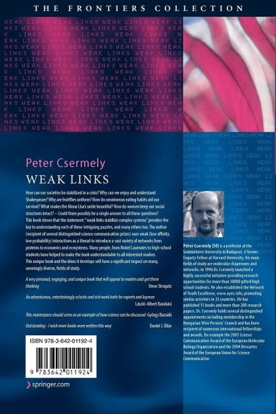 "This is an excellent book, which shows the far-reaching consequences of the great variety of weak links. The book has a proper balance between a scientific monograph and a popular approach, and mixes humor with sharp intellect. "Weak Links" is an adventurous, entertainingly eclectic and rich work both for the experts and laymen." (Lászlo-Albert Barabási, Department of Physics, University of Notre Dame, author of the bestseller book, Linked and the 1999 seminal Science paper on the preferential attachment model of scale-free network topology.)
