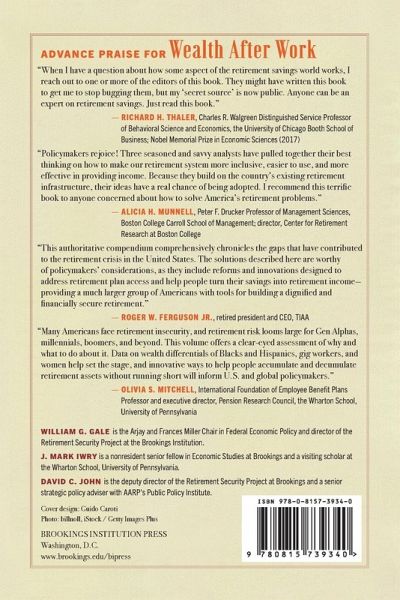 William Gale is the Arjay and Frances Miller Chair in Federal Economic Policy at the Brookings Institution, where he directs the Retirement Security Project and codirects the Urban-Brookings Tax Policy Center. He authored Fiscal Therapy: Curing America's Addiction to Debt and Investing in the Future (Oxford, 2019) and has co-edited several books.J. Mark Iwry is a nonresident senior fellow at the Brookings Institution and Visiting Scholar at the Wharton School. He formerly served as Senior Advisor to the Secretary of the Treasury for national retirement and health policy and was previously a partner in the law firm of Covington & Burling.David C. John is a nonresident senior fellow at the Brookings Institution and a Senior Policy Advisor at the AARP Public Policy Institute. Prior to joining AARP, he was a Senior Fellow at the Heritage Foundation and held senior roles in four congressional offices.