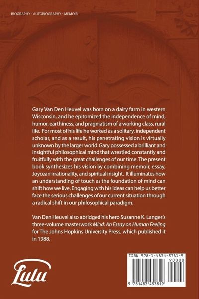 Gary Van Den Heuvel was born on a dairy farm in western Wisconsin, and he epitomized the independence of mind, humor, earthiness, and pragmatism of a working class, rural life. For most of his life he worked as a solitary, independent scholar, and as a result, his penetrating vision is virtually unknown by the larger world. Gary possessed a brilliant and insightful philosophical mind that wrestled constantly and fruitfully with the great challenges of our time. The present book synthesizes his vision by combining memoir, essay, Joycean irrationality, and spiritual insight. It illuminates how an understanding of touch as the foundation of mind can shift how we live. Engaging with his ideas can help us better face the serious challenges of our current situation through a radical shift in our philosophical paradigm. Van Den Heuvel also abridged his hero Susanne K. Langer's three-volume masterwork Mind: An Essay on Human Feeling for The Johns Hopkins University Press, which published it in 1988.