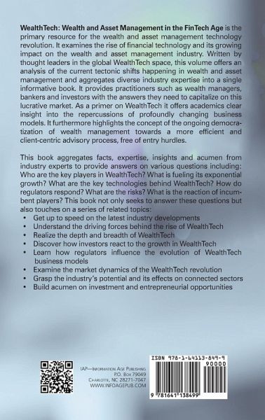 The book "WealthTech: Wealth and Asset Management in the Fintech Age" is the primary resource for the wealth and asset management technology revolution. It examines the rise of financial technology and its growing impact on the wealth and asset management industry. Written by thought leaders in the global WealthTech space, this volume offers an analysis of the current tectonic shifts happening in wealth and asset management and aggregates diverse industry expertise into a single informative book. It provides practitioners such as wealth managers, bankers and investors with the answers they need to capitalize on this lucrative market. As a primer on WealthTech it offers academics clear insight into the repercussions of profoundly changing business models. It furthermore highlights the concept of the ongoing democratization of wealth management towards a more efficient and client-centric advisory process, free of entry hurdles. This book aggregates facts, expertise, insights and acumen from industry experts to provide answers on various questions including: Who are the key players in WealthTech? What is fueling its exponential growth? What are the key technologies behind WealthTech? How do regulators respond? What are the risks? What is the reaction of incumbent players? This book not only seeks to answer these questions but also touches on a series of related topics: · Get up to speed on the latest industry developments · Understand the driving forces behind the rise of WealthTech · Realize the depth and breadth of WealthTech · Discover how investors react to the growth in WealthTech · Learn how regulators influence the evolution of WealthTech business models · Examine the market dynamics of the WealthTech revolution · Grasp the industry's potential and its effects on connected sectors · Build acumen on investment and entrepreneurial opportunities. A unique product for the marketplace Digital transformation is creating game-changing opportunities and disruptions across industries and businesses. One industry where these game-changing opportunities will have profound impacts is wealth and asset management. For generations, wealth and asset management was a privileged service provided to co-operations and wealthy individuals. The informational advantages that wealth managers held vis-à-vis their clients provided a key competitive differentiator. In the current digital transformation climate, this differentiator is vanishing and the setting is changing. A top priority on the agenda for any wealth and asset manager must therefore be how to respond and prepare for the ramifications of this fast changing business environment. This book (one of the first to be published in this area) will provide the reader with a head start in adapting to this new digital environment.
